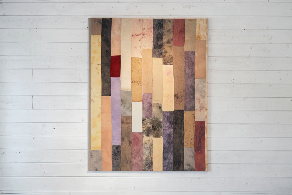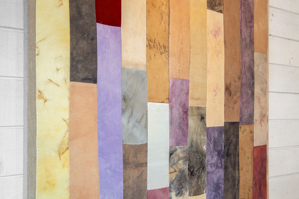 växtfärgning, naturliga pigment på linne, bomull, silke och ull, 116,5 x 91 cm