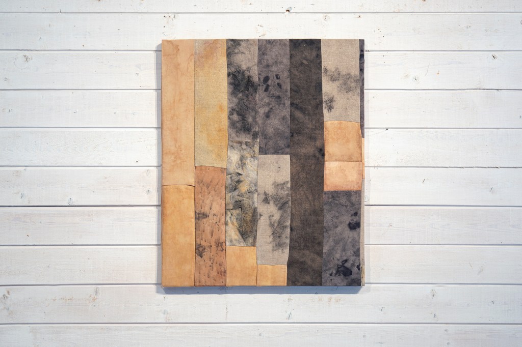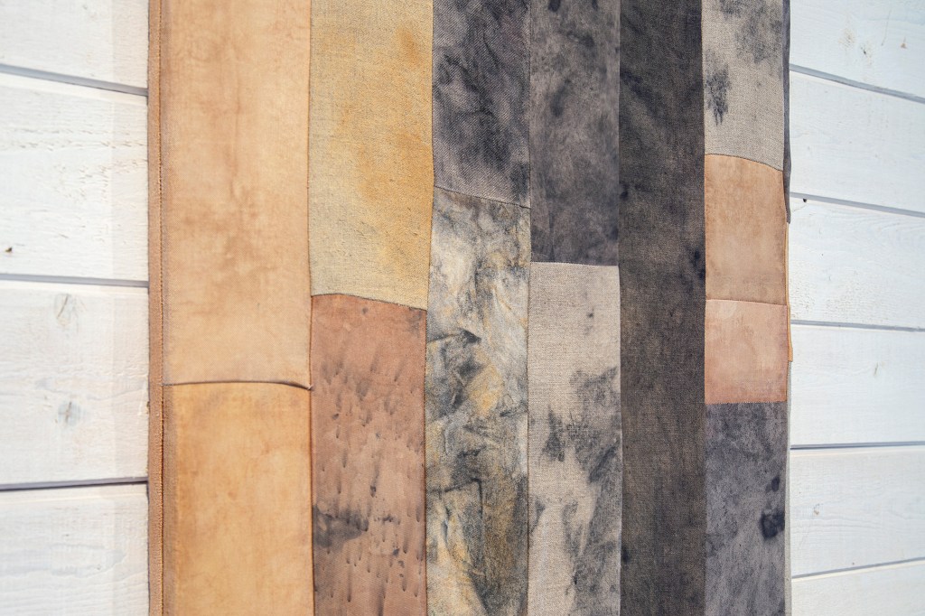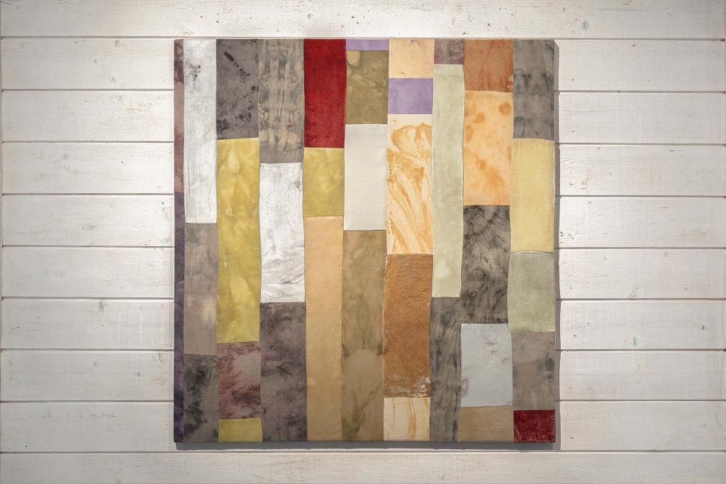 växtfärgning, naturliga pigment på linne, bomull, viskos, silke och ull, 80 x 77 cm