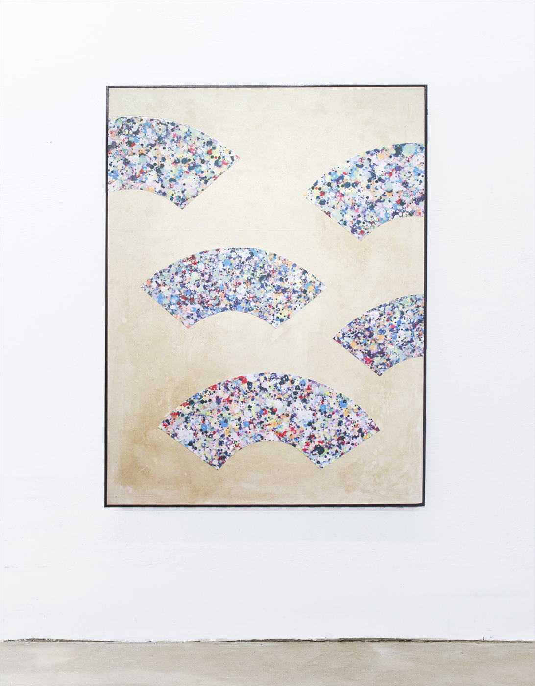 Fans, 2016. Digital print on canvas, oil, tea, bone glue, pearlescent pigment and epoxy on cotton with wooden frame, 147,5 x 109 x 4cm