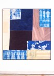 - Untitled (Aizome), 2018 Oil, bone glue, gesso, dye, Indigo fabric, Kimono fabric, pearlescent pigment on cotton canvas in lacquered wood frame