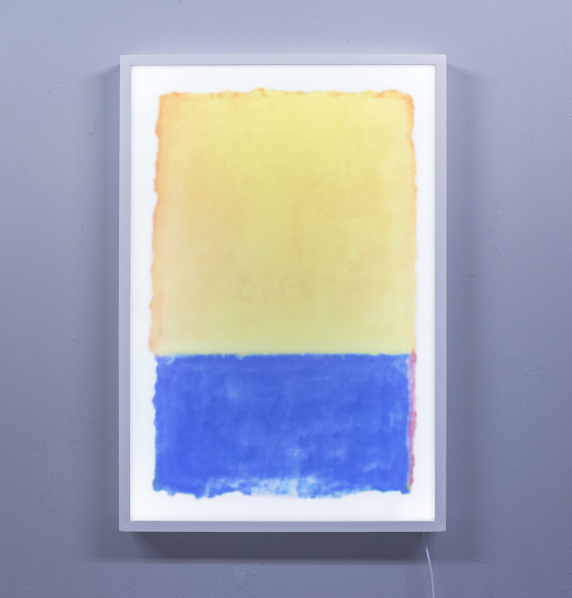 CeruleanblueTangerineyellow, 2017 Ink-jet print on back-light paper, LED, mounted in wood frame with plexi glass, 82 x 54 x 7,5cm
