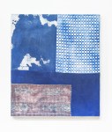 - Aizome, 2018. Glue, aizome fabric, washi paper on cotton canvas, 42,5 x 34,5 x 4cm