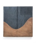 - Dark Blues/Off-White Stripes, 2018. Dye, pearlescent pigment, tread, glue, bee wax, aizome fabric on cotton canvas, 51,5 x 44 x 3cm