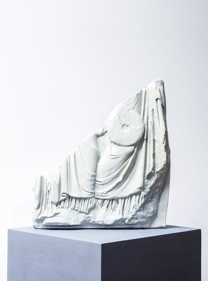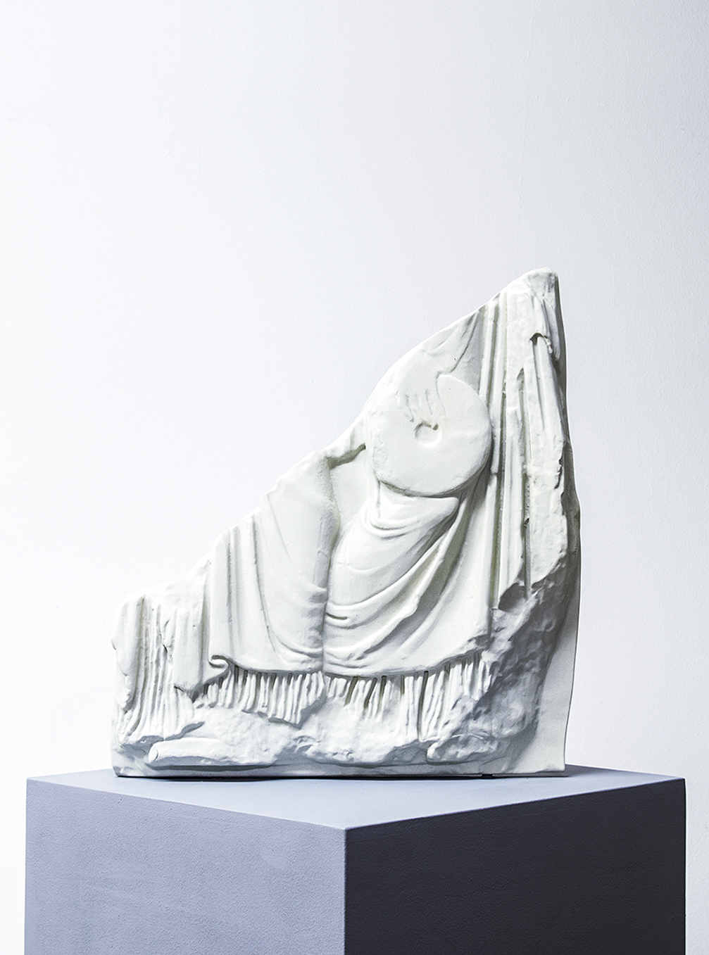 Metamorphosis II, 2019. Laser 3D technology (SLA), spray plaster, spray paint, matt lacquer, 53 x 44.8 x 7.7cm, size of podium: 45 x 45cm, 78 cm