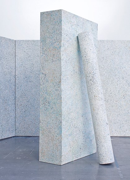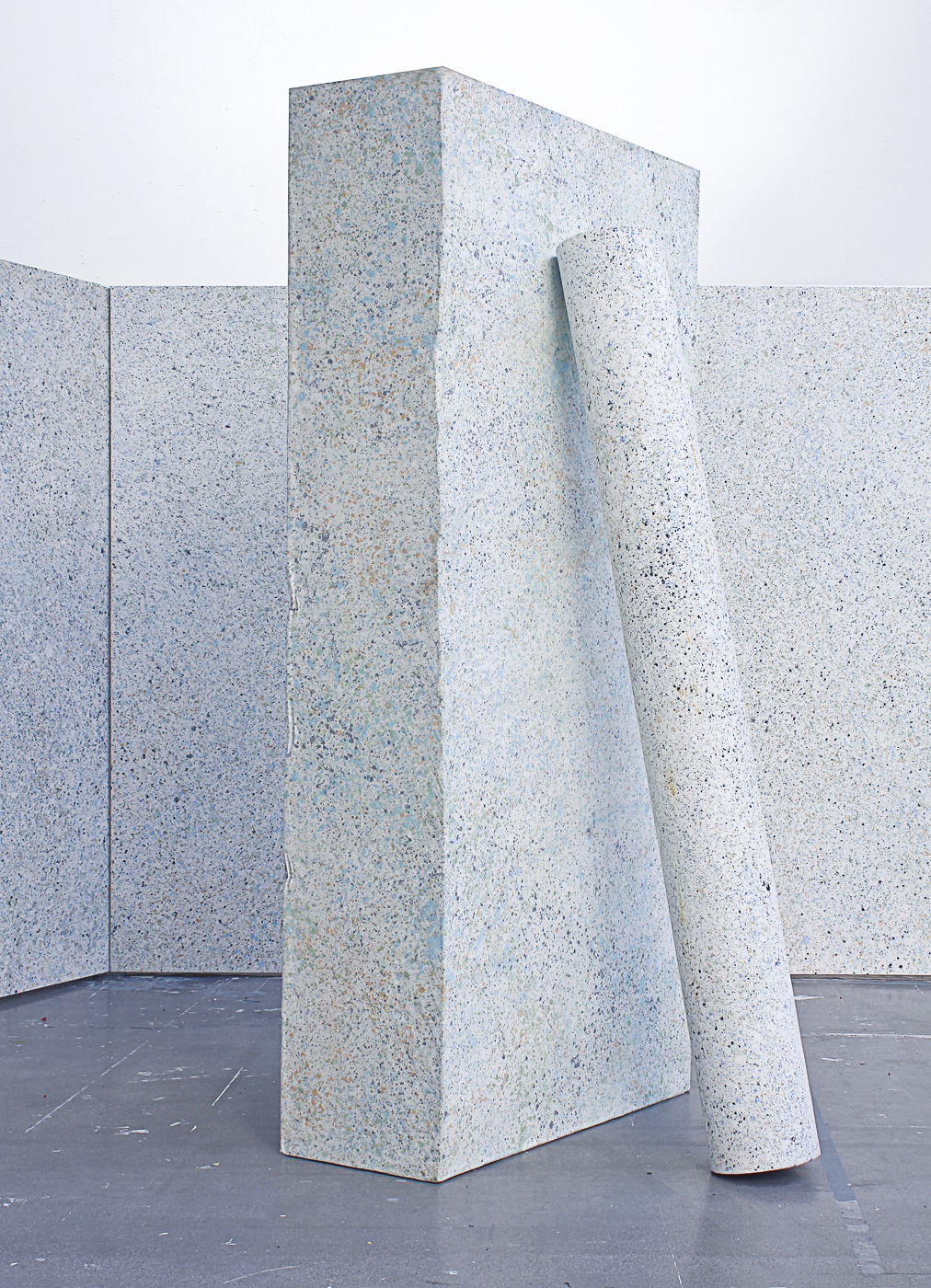 (Sculpture, pillar) Acrylic on canvas mounted on cellplast & mold tube, glue, clear coat, various sizes, 2014