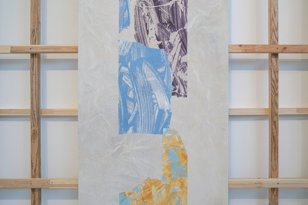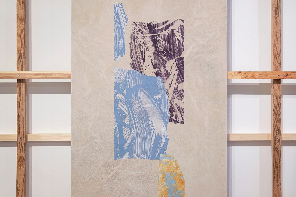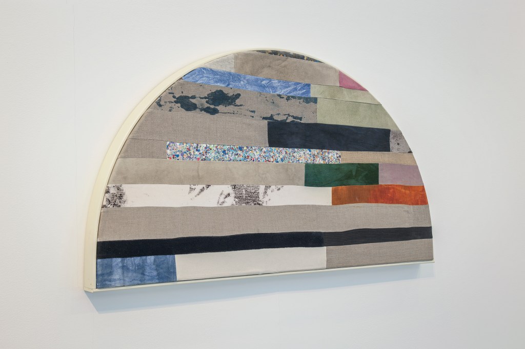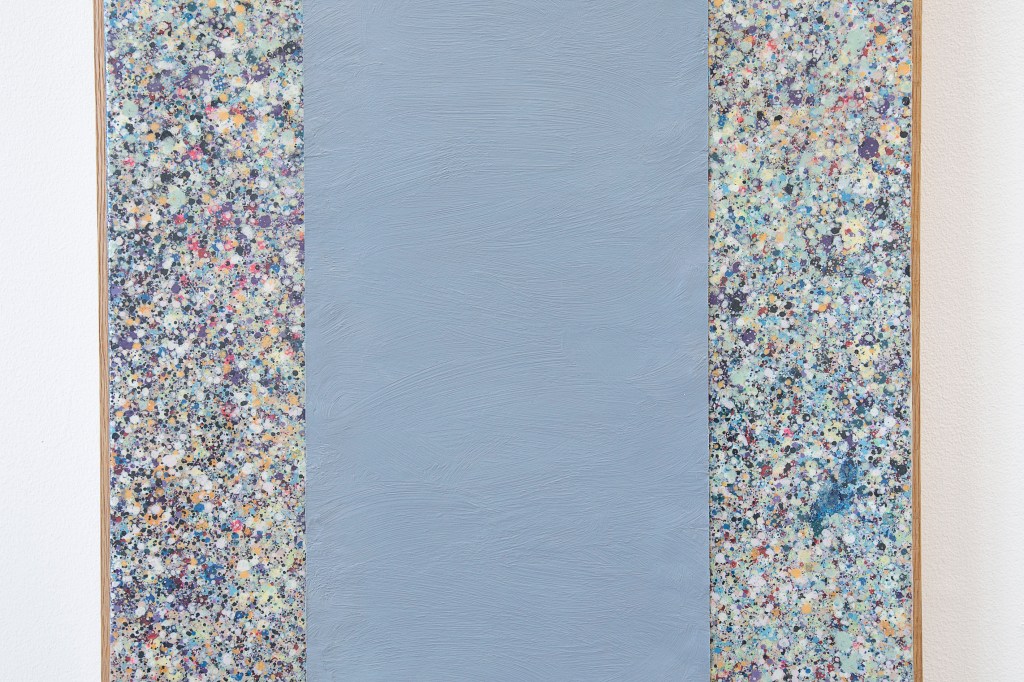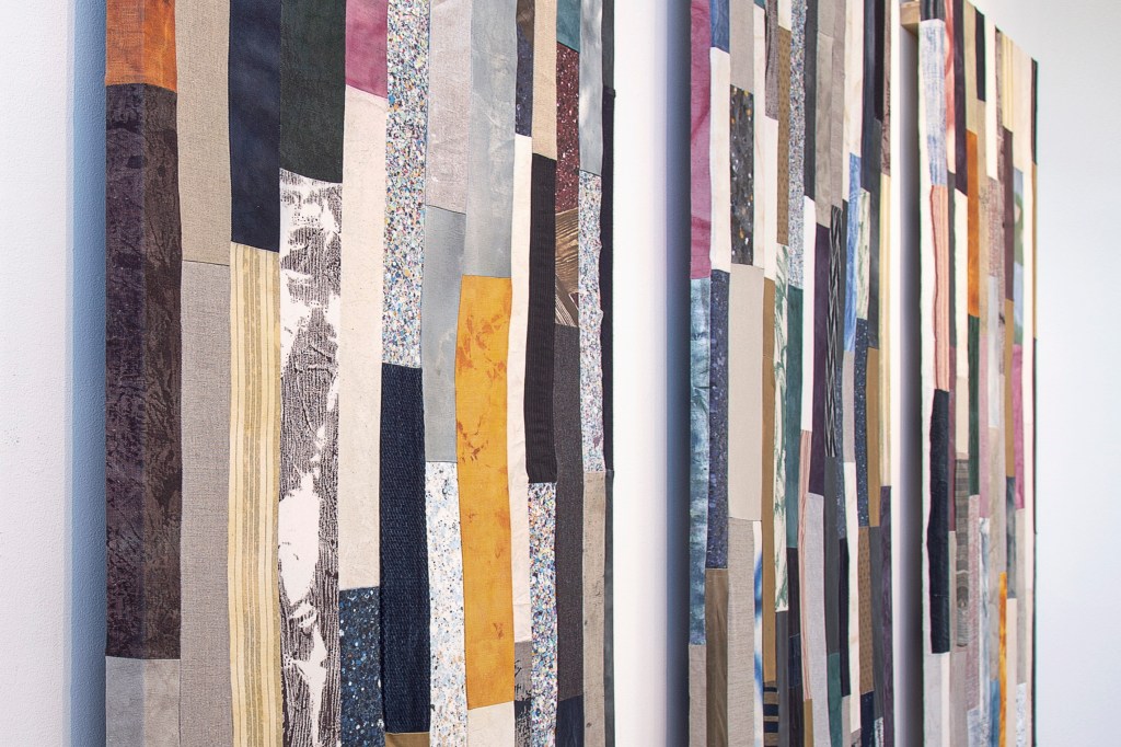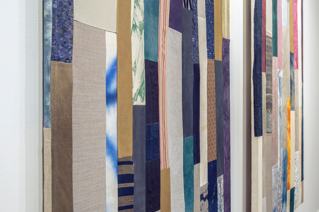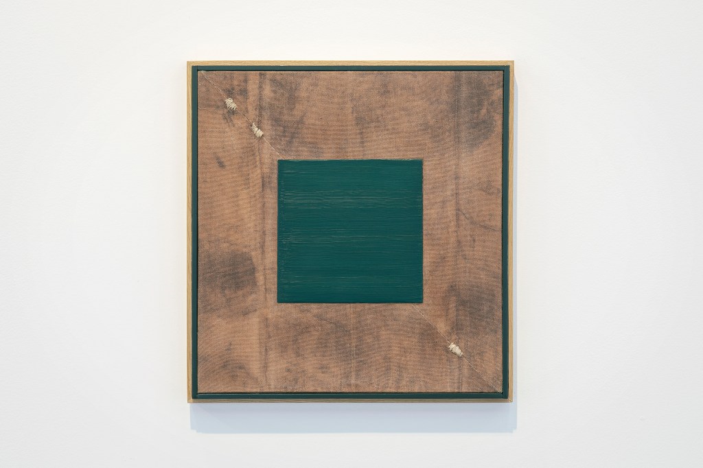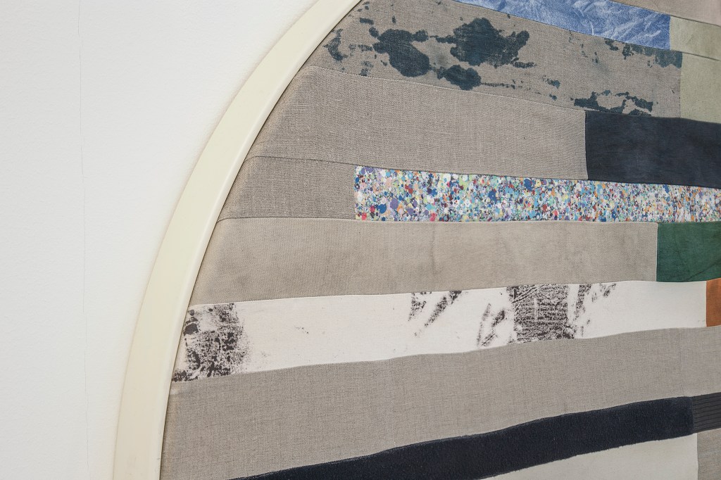 Inspiration från det arkitektoniska med dess material och enkla, geometriska former har varit en bidragande del i verkens utformning och funktion. De ”rastrerade” canvasdukarna av återanvänt material blir som ett heltäckande mosaik av olika färger och strukturer över ramkonstruktionerna. Verken tycks balansera av lätthet på skulpturer ute i rummet likt verket Untitled (Balance). Hämtat från en klassisk, modernistisk möbel, har bordsbenen klätts om i rå betong och blivit en bärande konstruktion för målningen. Med transparens och förskjutningar samspelar det hybrida verket med Tyresö konsthalls befintliga arkitektur och rum.
