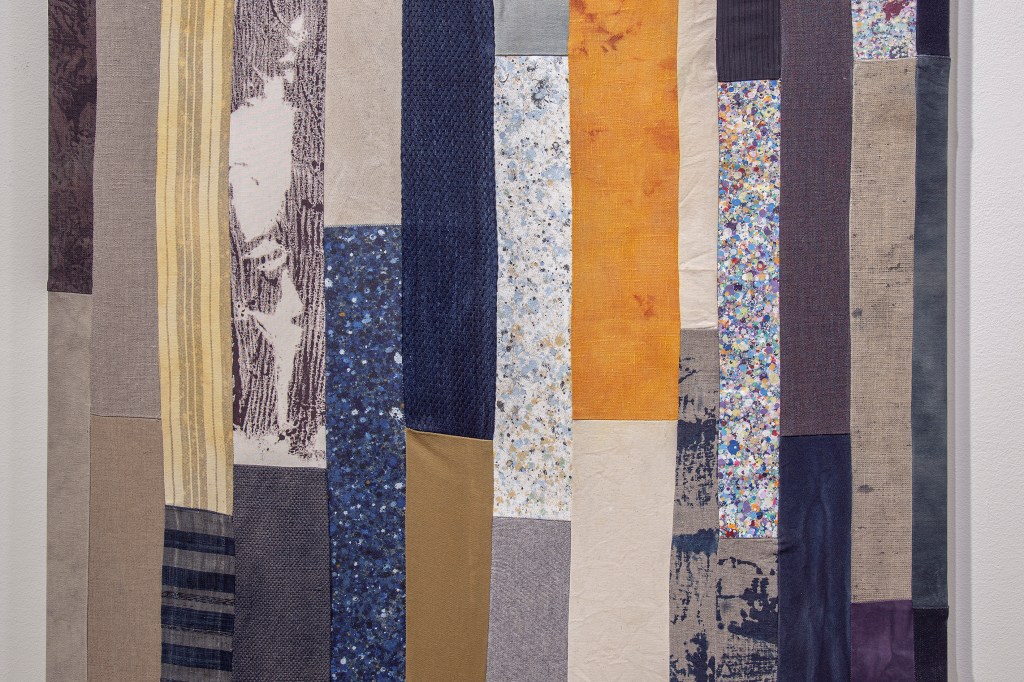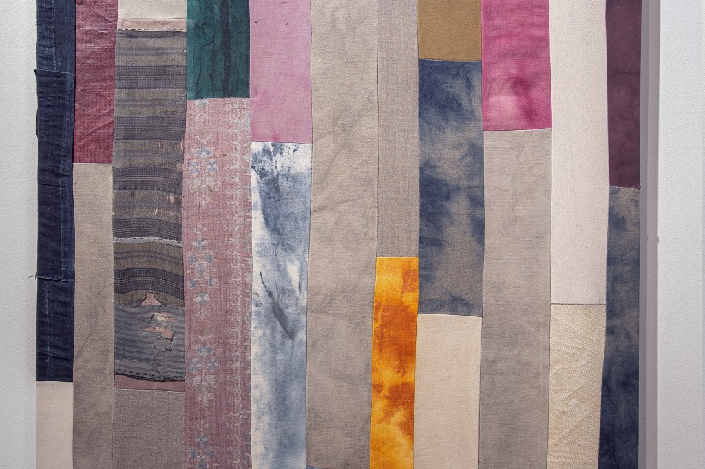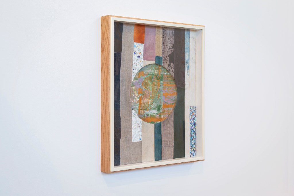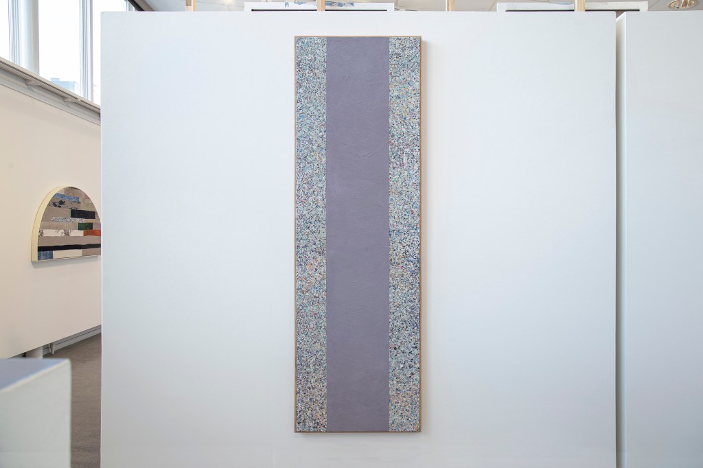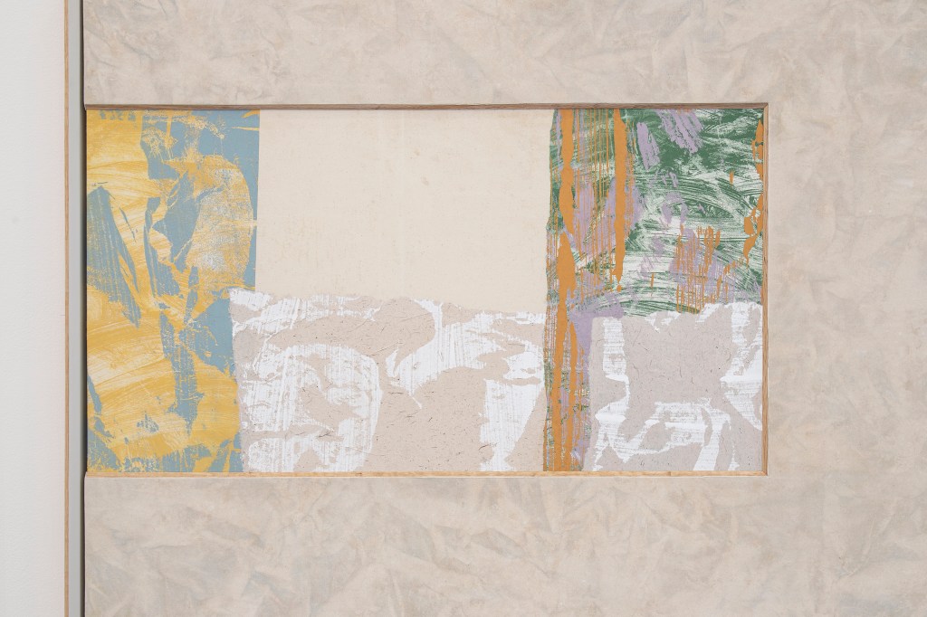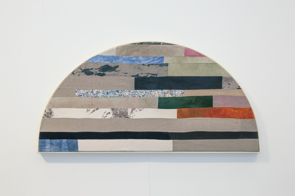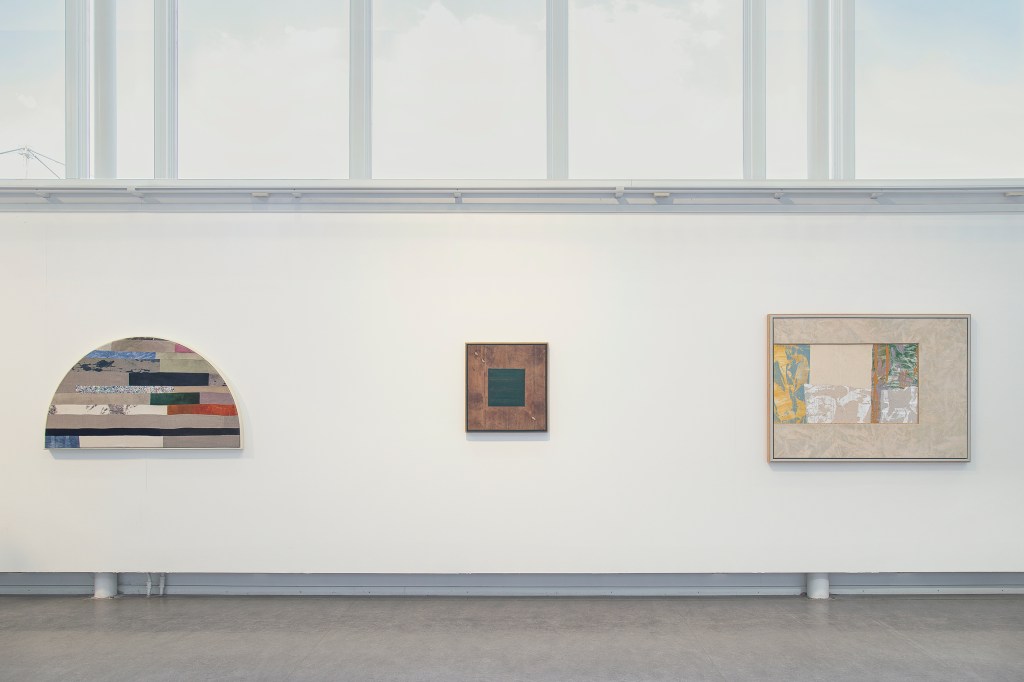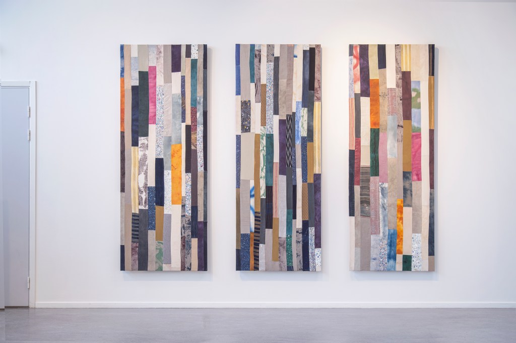 Inspiration från det arkitektoniska med dess material och enkla, geometriska former har varit en bidragande del i verkens utformning och funktion. De ”rastrerade” canvasdukarna av återanvänt material blir som ett heltäckande mosaik av olika färger och strukturer över ramkonstruktionerna. Verken tycks balansera av lätthet på skulpturer ute i rummet likt verket Untitled (Balance). Hämtat från en klassisk, modernistisk möbel, har bordsbenen klätts om i rå betong och blivit en bärande konstruktion för målningen. Med transparens och förskjutningar samspelar det hybrida verket med Tyresö konsthalls befintliga arkitektur och rum.