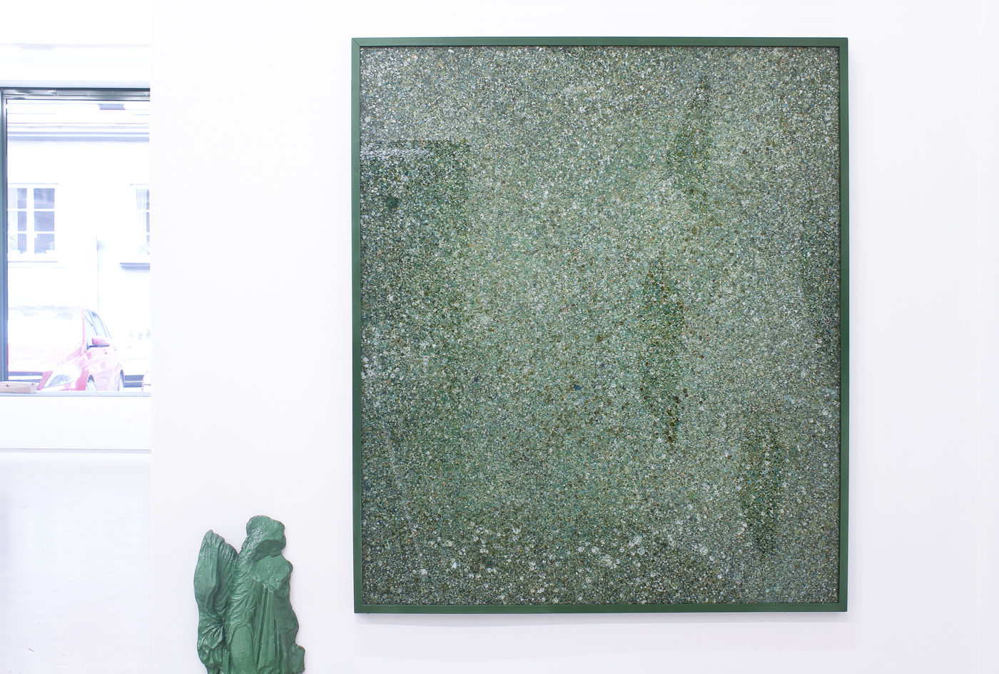 Emerald Forest Green , oil, pearlescent pigment on plexi glass, wood frame, clear coat,129 x 114cm, 2014