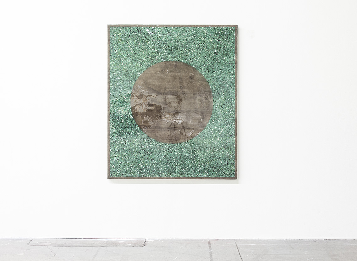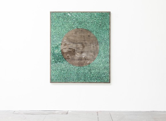 Forest Green With Empty Circle, oil, pearlescent pigments, epoxy on canvas, 120 x 100cm, 2014