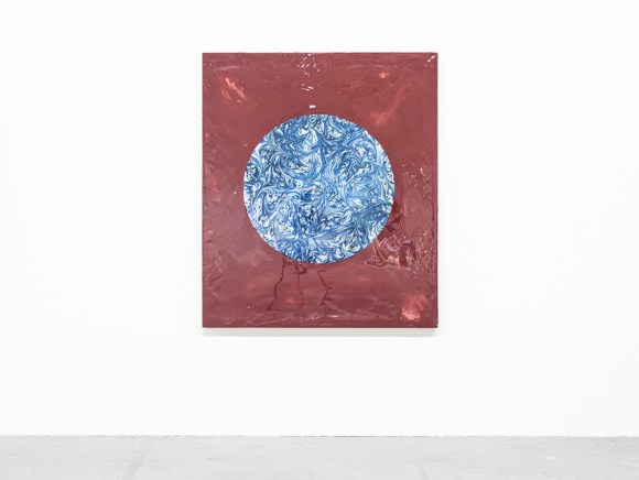 Blue Marbling on Venetian Plaster, oil, pearlescent pigments, venetian plaster, paper, epoxy on canvas, 120 x 100cm, 2014