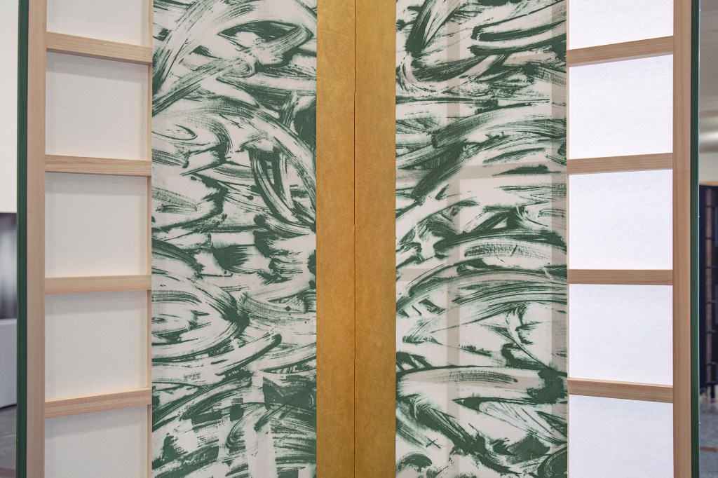 The foundation for the screens has been built by Kataoka according to the artists’ sketches and demands. Each artist has then investigated different means of transferring his or her practice to the format of the folding screen. The exhibition displays the five very distinctive ways in which the artists have interpreted and also let themselves be influenced by this traditional Japanese craft.