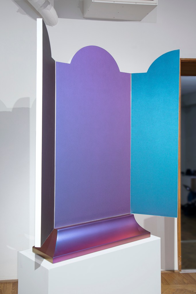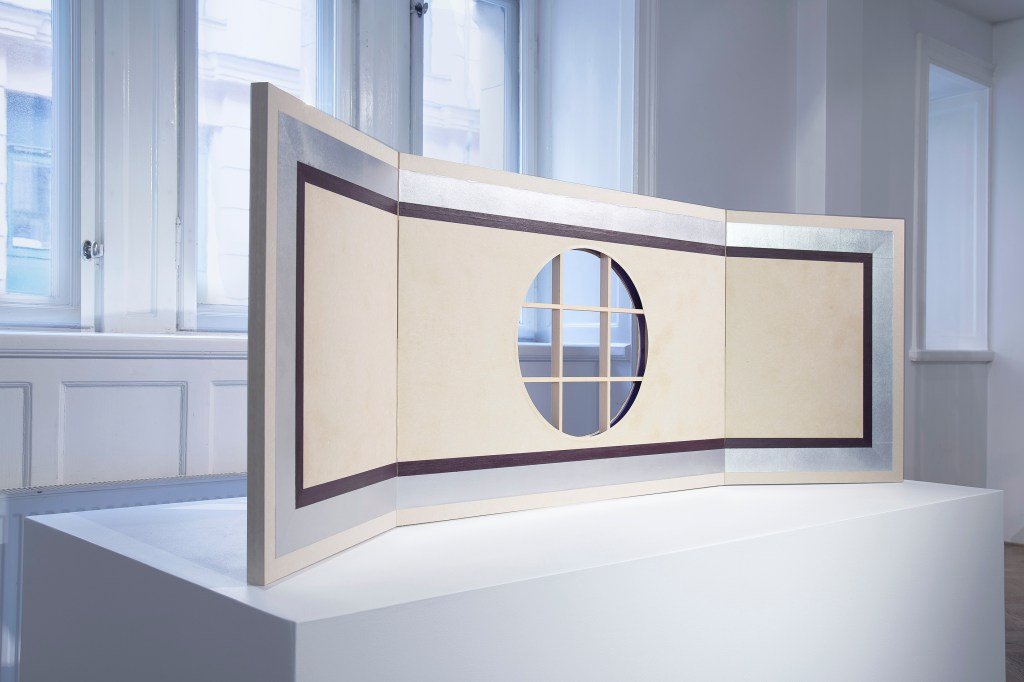 Hiba wood frame, washi paper, silver leaf, gelatine, gesso, acrylic, oil, 67 x 49 cm, 67 x 98 cm, 67 x 49 cm