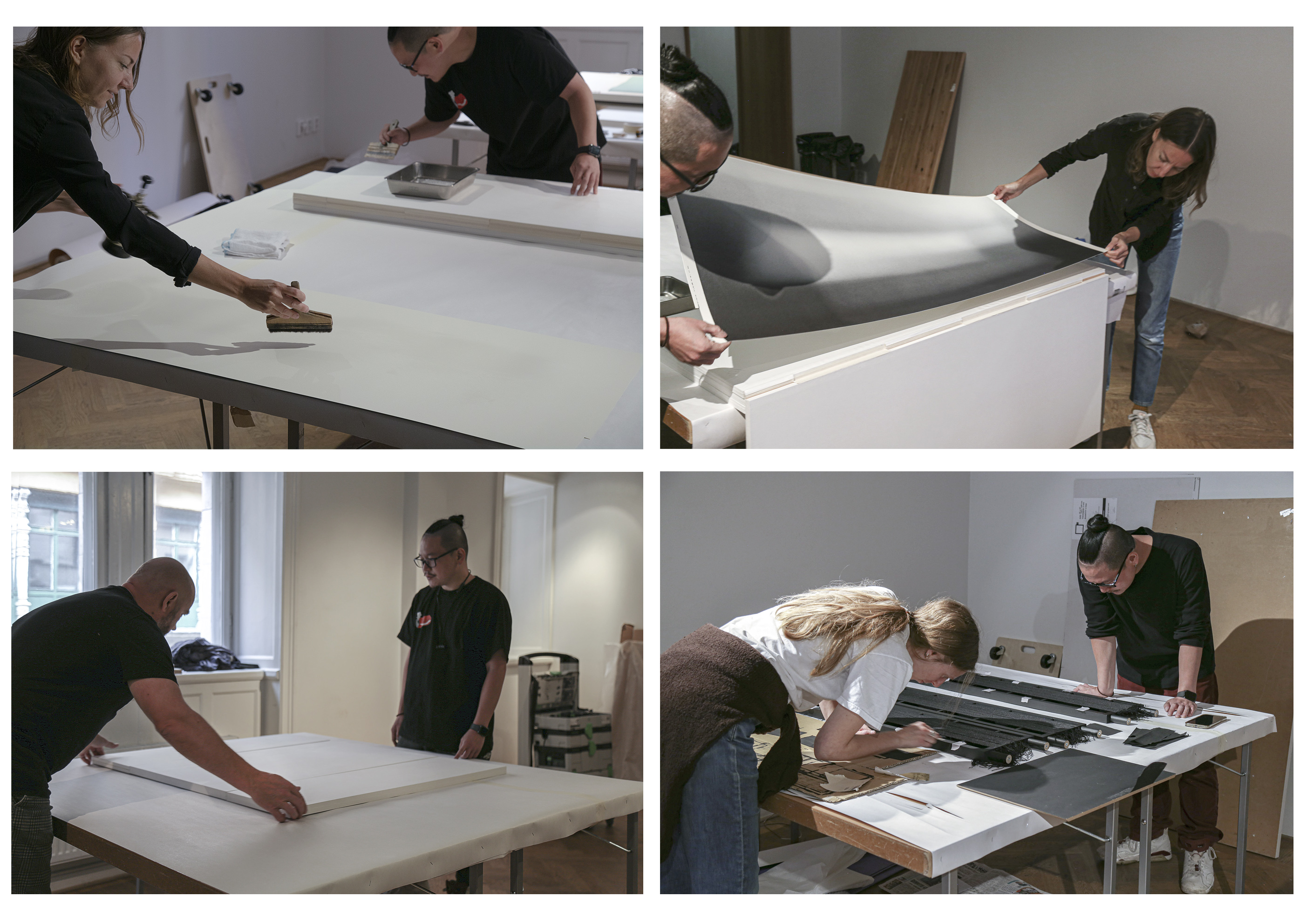 The folding screens have developed in a flow of ideas, conversations and reinterpretations between Kataoka and the invited artists during the course of the project. Kataoka has built the very foundation for each screen in his Tokyo studio. The screens have then been transported to Stockholm to be assembled and completed on site at Konstnärshuset.