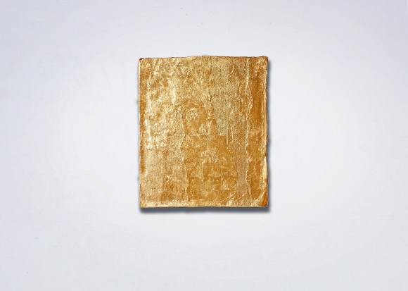 Tangible Dreams (Gold Monochrome), reconstructed wall fragment (mix media), wall paper, 24K gold sheets, 39x33cm. 2013
